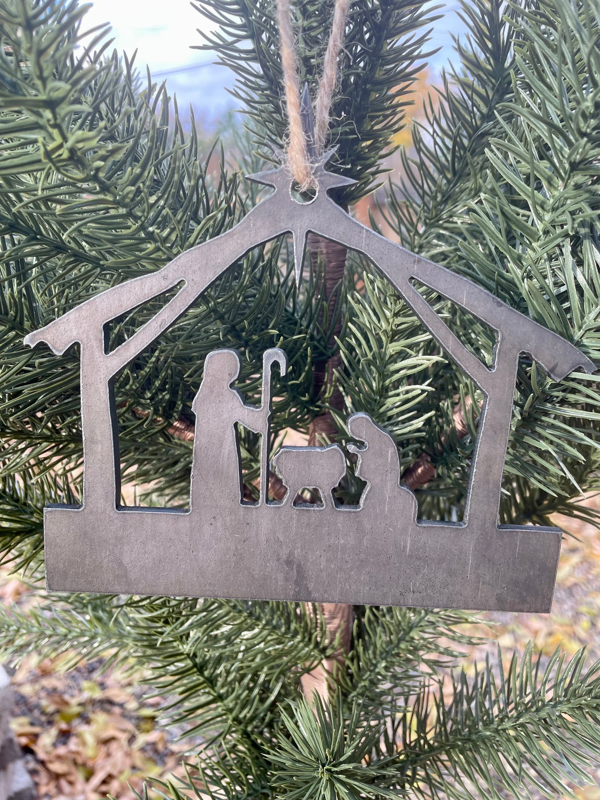 This stunning metal nativity Christmas ornament captures the serene beauty of the birth of Jesus. Crafted from durable, high-quality metal, it features intricately detailed silhouettes of Mary, Joseph, and Baby Jesus set against a beautifully designed stable backdrop. Its timeless design makes it a cherished piece for your tree, symbolizing the true spirit of Christmas. Perfect as a gift or a personal keepsake, this ornament will be a treasured part of your holiday traditions for years to come.